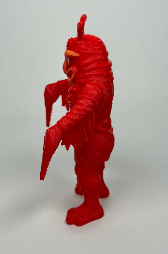 One of a kind hand painted three eyed Martian toy from the film, Angry Red Planet. No two hand painted toys are alike. Measures 4 inches high. Solid plastic.