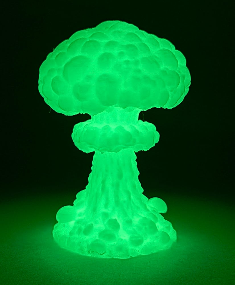 Our artist expands the Matango Mushroom universe with this A-bomb mushroom monster, beautifully rendered in glow-in-the-dark plastic. Measures 4 inches high. The only thing missing is the radioactivity, but patience mushroom fans, we’re working on it.